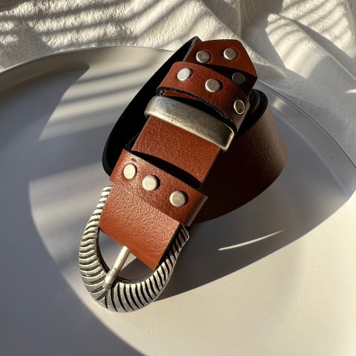 Handmade Brown Leather Belt Women’S Waist Boho Bronze