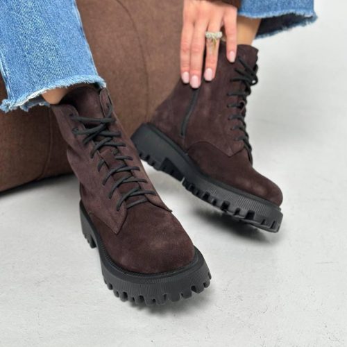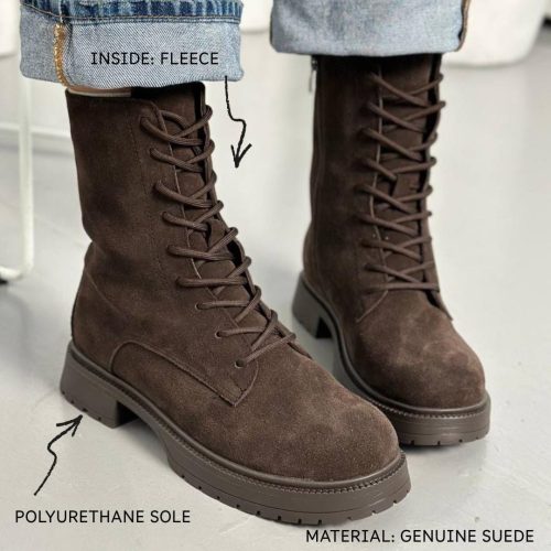 Brown Suede Combat Boots For Women Chunky Sole