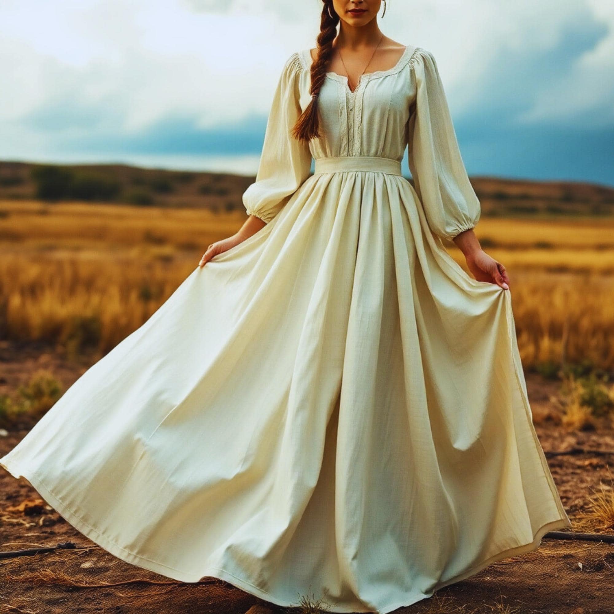 Whether you’re drawn to historical fashion or simply love a flowy linen dress, this piece is a must-have. Crafted with attention to detail, this handmade linen dress ensures durability and comfort for all-day wear. Step into a bohemian style dress that blends history, elegance, and modern comfort beautifully.