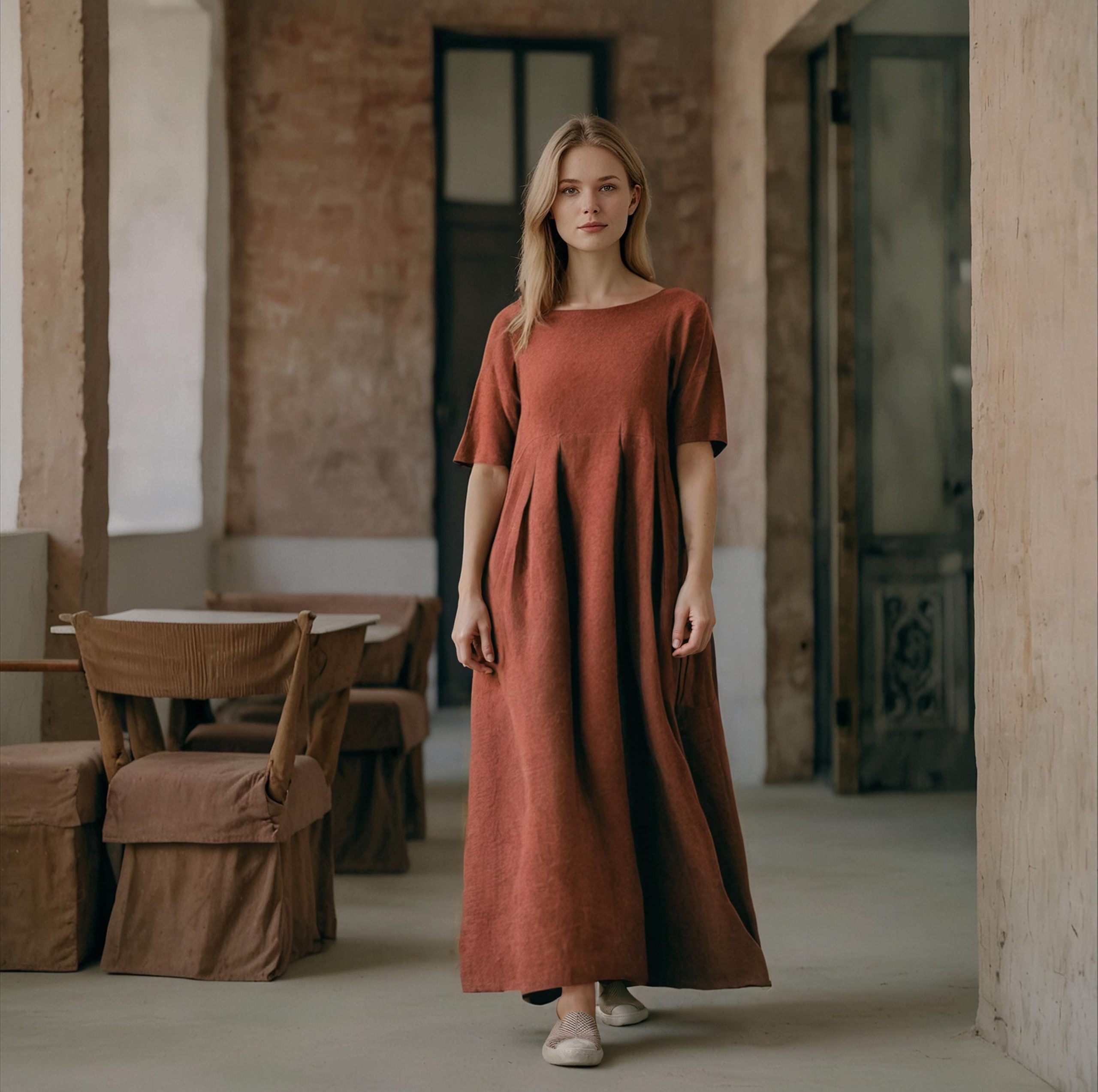 Women Cotton Maxi Dress , Boho Linen Causal Dress, Long Maxi Dress, Midi Dress Loose Robes, Retro A-line Maxi Dress