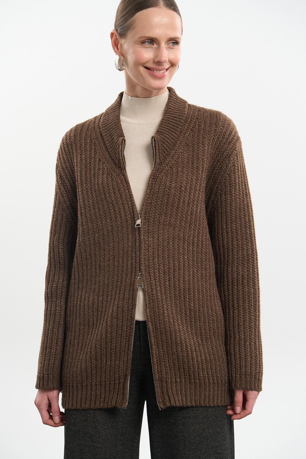This chunky wool zip cardigan is designed for women who value comfort, structure, and elevated minimalism. Made from a soft wool-rich yarn, it features a thick ribbed texture, a smooth two-way zipper, and a relaxed silhouette that layers beautifully over any outfit.