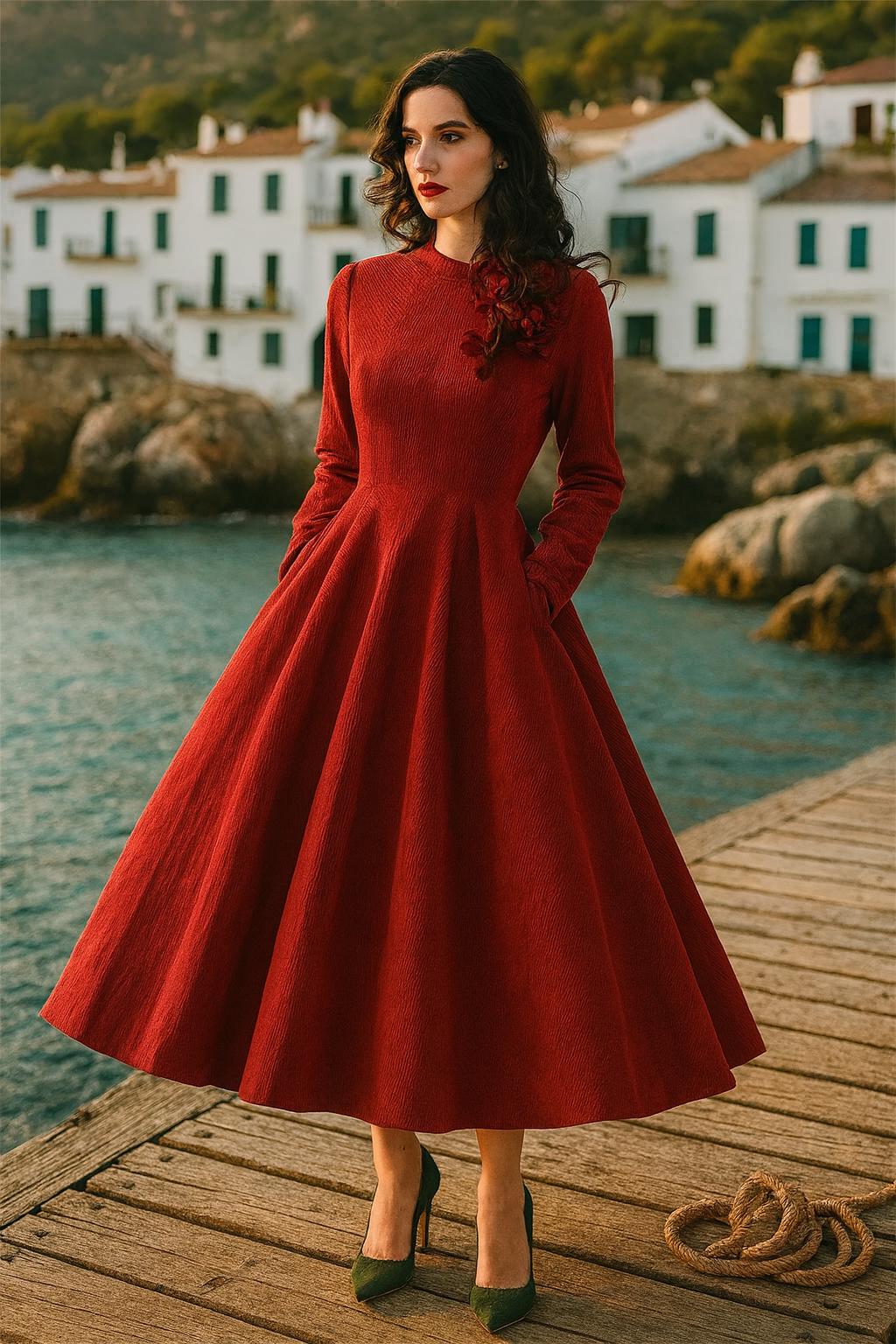 Be the first to review “Elegant Red Maxi Dress: Long Sleeve Flared Gown” Cancel reply