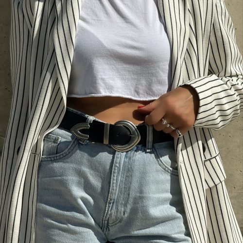 This meticulously handcrafted leather belt features stunning black and silver accents, setting new standards for elegance. The central buckle, paired with an engraved silver accent, adds a touch of refinement. Elevate every outfit with this exclusive accessory from us Store and make a statement of style.