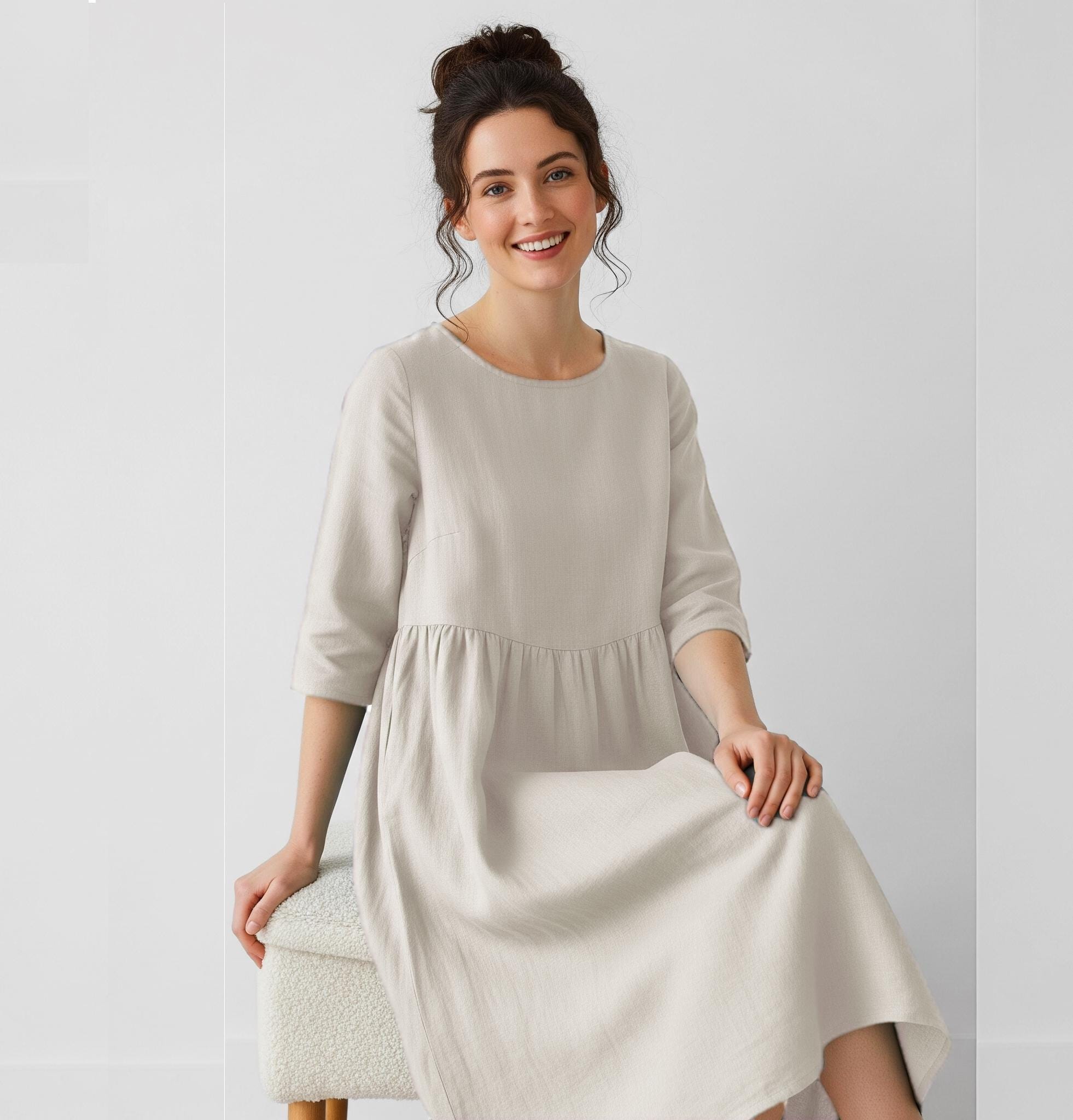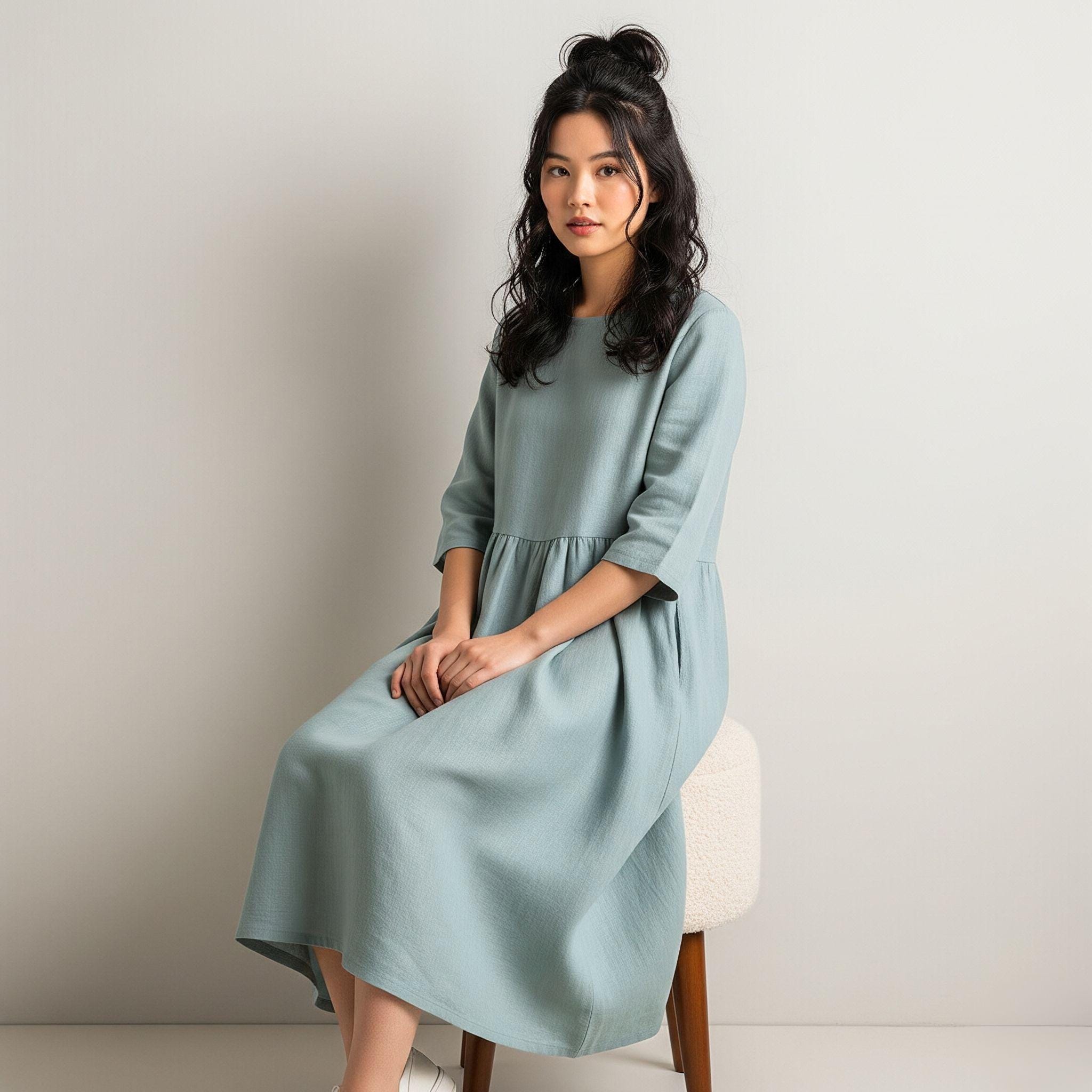 Our Handmade Linen Dress is made from a lightweight and skin-touch, soft fabric with a nice drape to it. It is made of high-quality fabric with exquisite workmanship, well-stitched, comfortable to wear.