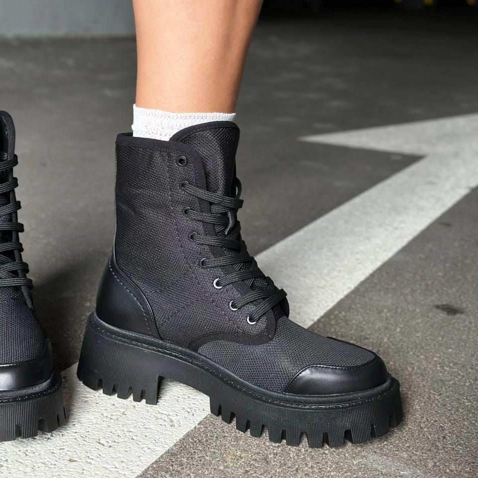 Experience the perfect combination of practicality and style with these women’s black leather boots, designed to be your most reliable pair for daily walking. The upper is constructed from high-quality genuine leather paired with robust Cordura fabric, which not only adds a modern casual military look but also offers excellent resistance to moisture and wear. This makes them an ideal choice for unpredictable autumn weather and slushy winter streets.