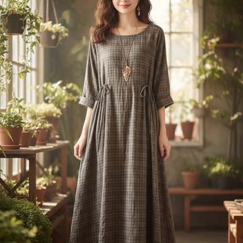 Be the first to review “Women’S Linen Blend Plaid Maxi Dress Long Sleeve” Cancel reply